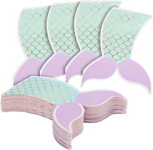 - Mermaid Napkins for Birthday Party: Complete your ocean themed birthday party supplies with our set of mermaid tail-shaped cocktail napkins for kids’ birthday parties