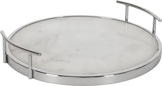 • MODERN DESIGN: This tray has an on-trend round shape and a two-tone white and polished silver finish for a glamorous edge