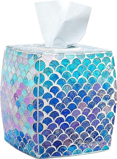 - This gorgeous tissue box cover is hand-made with thick, sturdy mosaic mermaid bathroom decor glass style. Ideal to hide those ugly boxes and help it match the rest of your bathroom.