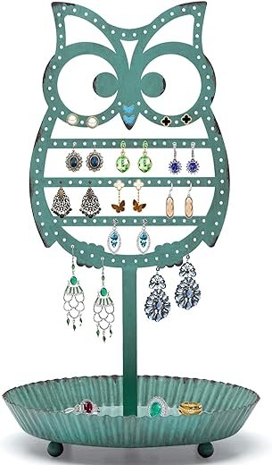 - [GREAT WORKMANSHIP AND UNIQUE OWL DESIGN] – Special owl shape earring holder made of durable metal. Our jewelry organizer is painted, not easy to rust. It fits easily on any tabletop, nightstand, dresser, vanity. Reasonably spaced and neatly arranged keeps your earrings from crowding, and makes your earrings at a glance. Measures approx. 7.68 x 7.68 x 13.19 inches