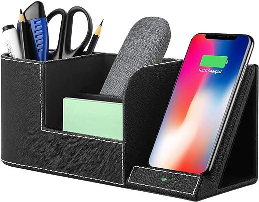 - 【Idea Christmas Gift & Handmade】 Our wireless charger with desk organizer is made of durable high-quality PU leather. Surprise your lovers, friends, or co-workers. A thoughtful present for Christmas, a Birthday, or another occasion.