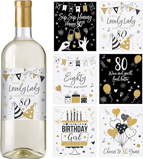 • 80th Birthday Wine Bottle Labels – celebrate a milestone with 6 unique wine bottle lables