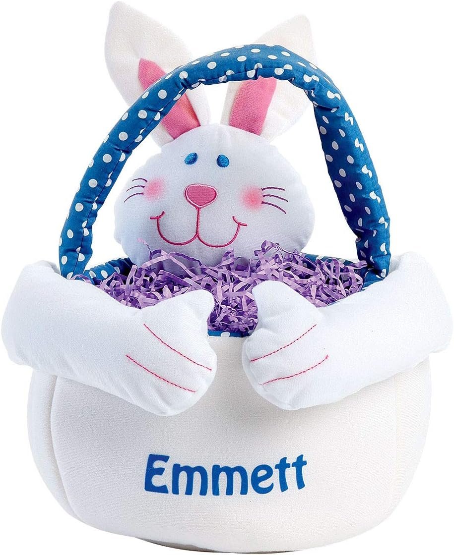 Introducing our Eggs-ceptional bunny totes for a fun-filled egg hunt! Made from soft poly-cotton fabric, these totes feature detailed, smiling faces that will delight your child. The boy bunny design comes with blue accents and can be personalized with your child’s name in blue. With a 10″ diameter and 14″ height, these totes are perfect for collecting eggs. Custom-applied with flocked vinyl, your child’s name adds a special touch. (Contents not included) Choose up to 12 characters for the name. Please note that we cannot print foreign characters.