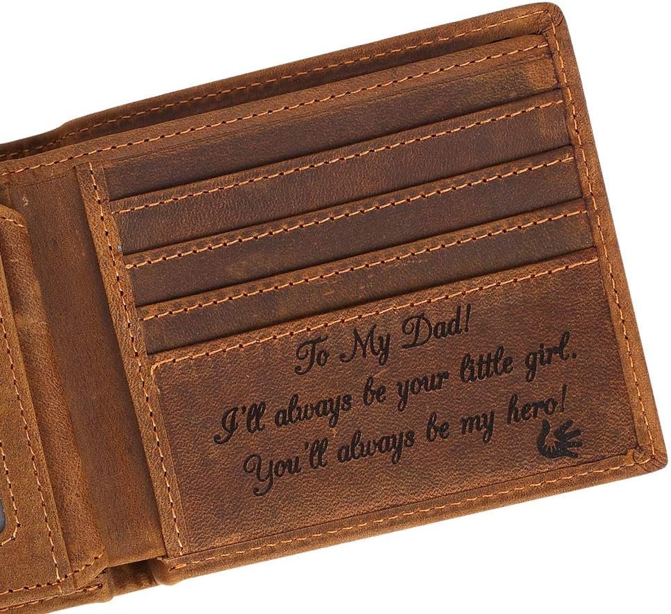 - π Perfect Gift Solution – Maybe you are worrying about finding a practical and funny gift for your dad’s birthday. Or You’ve run out of original gift ideas for your father’s christmas day gift. Now our engraved leather wallet is the perfect solution!