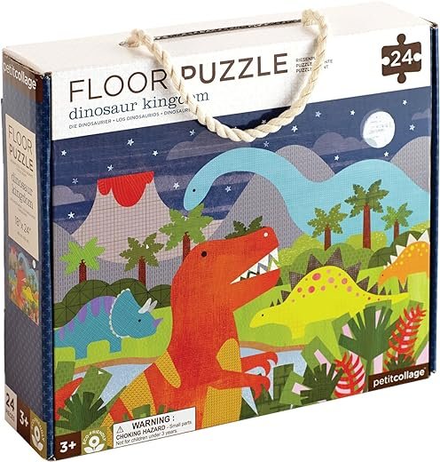 - PUZZLE FOR KIDS – The Dinosaur Kingdom 24-Piece Floor Puzzle from Petit Collage has big sturdy pieces that are perfect for little hands. The completed large floor puzzle measures 18” x 24” and is perfect for ages 3 plus