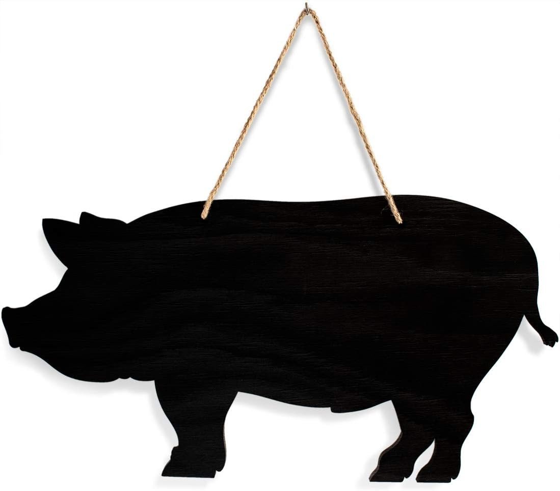 - Pig Decor For Home or Party – Looking for Farmhouse Style Decor, uniquely themed Wedding Decorations, or Pig House Decorations? Then this hanging chalk board will add the Perfect Touch of Country Charm to your event. Plus, as this cute black board is Double Sided, it is twice as useful for providing information to your guests!