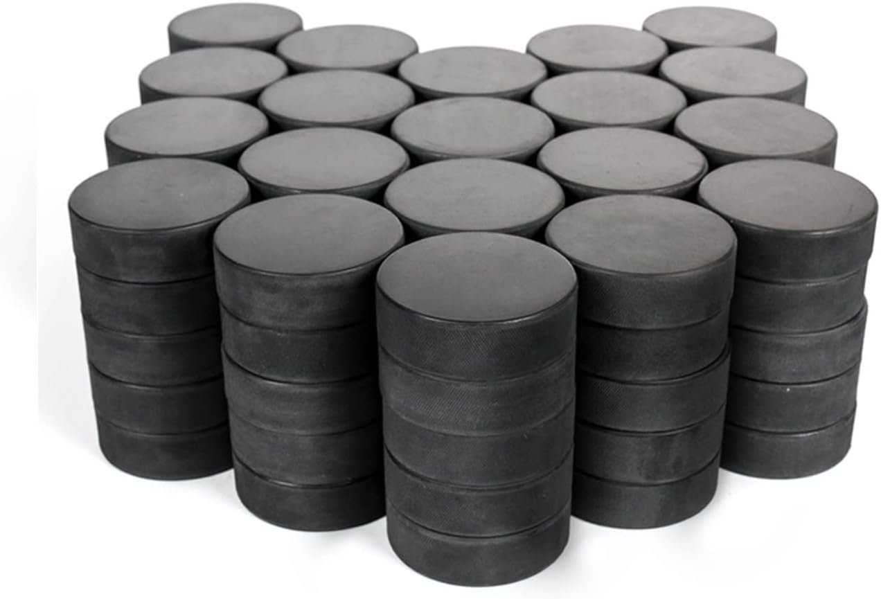 - HIGH QUALITY MATERIAL – Vulcanized Rubber – Our pucks are made from a high quality rubber and will resist chipping. Made of rubber, solid puck, good hardness and resilience, durable in use. Both sides are smooth and flat, easy for sliding.