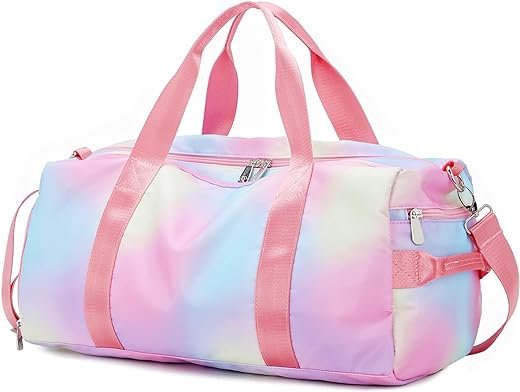 • Girls Gym bag with shoe compartment to keep your sneakers and dirty gear separated, as well a zipped plastic wet pocket for bathing suits or travel toiletries