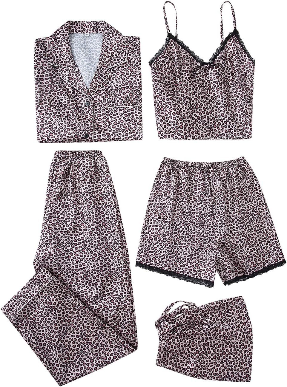 - 5PC PAJAMA SETS: The silk pajamas included a cami, a button-down sleepshirt, a pair of shorts, a pair of long pants, a bag.5pc pjs sets for year-round wear, meet the needs of your four seasons.