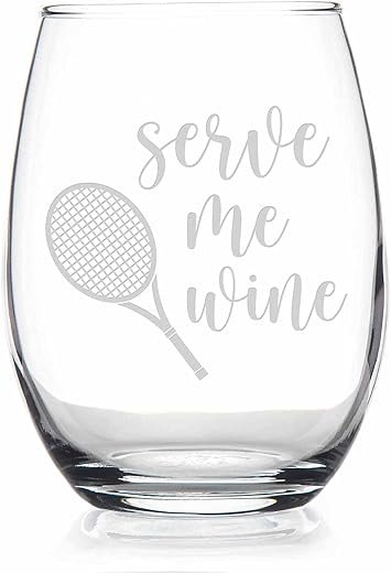 This Serve Me Wine Tennis Stemless Wine Glass is laser etched creating a beautiful frosted effect that is dishwasher safe and will hold up for years. You’ll receive your glass safely packed in a 200lb test box securely wrapped in a combination of foam and bubble wrap that creates the optimal protection for shipping glasses.