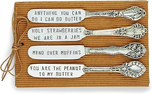 Introducing a versatile and giftable spreader set that comes on a corrugate card, making it a perfect present for any occasion. Each spreader measures approximately 5.5″ and is dishwasher safe for easy cleaning. Whether you’re hosting a party or celebrating a special holiday, this beautiful serving set is sure to impress. It also makes a great hostess gift or wedding gift. Upgrade your serveware collection and elevate your entertaining experience with this stylish and practical spreader set.