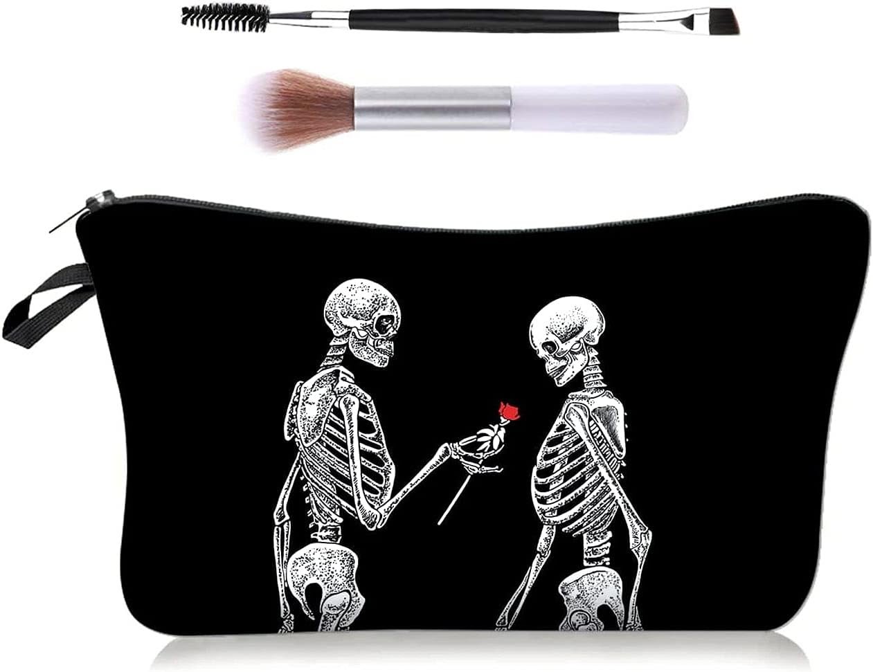 - Professional Black Skull Makeup Bags – Spooky make up bag decoration accessories goes well with your skeleton Halloween costume,skull purse,ect. Zipper closure and thickened lining,sturdy enough to keeps various items in it; just what u need for the coming overnight bag,fits young or elders,women,ladies,men,unisex adults for travel, business, home items organizer,other outings. perfect bag to add to any skull loving fan,co-workers.definitely a good buy for the skull obsessed.