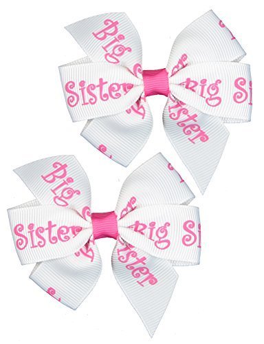 - HipGirl boutique style pinwheel hair bows hair clip set. Size: 3 inch long x 3 in wide. Made of 7/8″ solid grosgrain ribbons to match big sister shirt and big sister outfit.