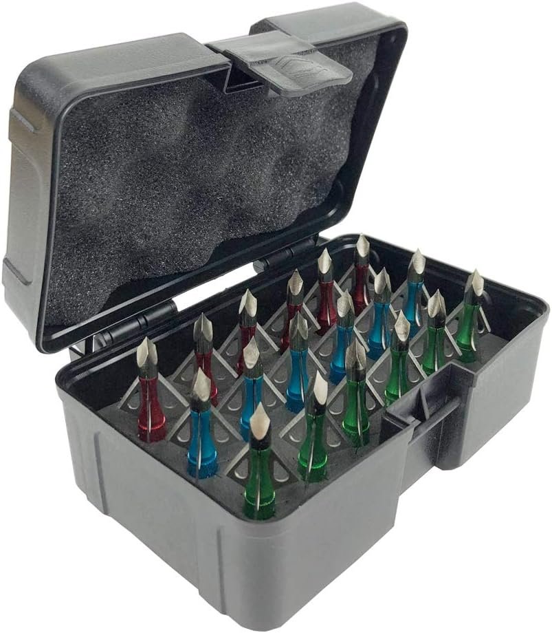 - Designed Storage Box Case with 18pcs Mixed Color Packaging, You can Get Several Color Broadheads at One Shot. All Arrow Heads Packed in a High-quality Specified Broadhead Case Which have 2 Piece Foam Pad in the Box to Make the Arrow Heads well Protected and Easy to Carry.