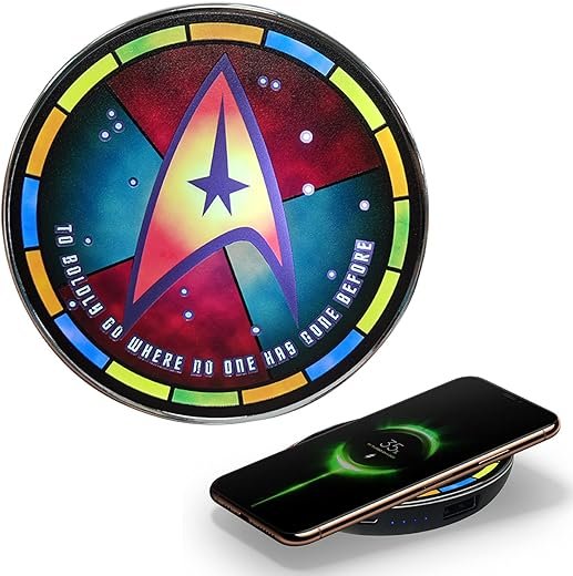- GREAT GIFT FOR STAR TREK FANS | This Star Trek Wireless Charger is much more than just a convenient way to charge your phone or tablet. With an Illuminated Starfleet logo that looks beautiful when the device is charging this wireless charger is a great gift for Sci-Fi fans looking for a unique Star Trek collectible.