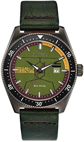 - Dial features design detail from Boba Fett’s chest armor, in olive green with accents in burgundy and deep yellow