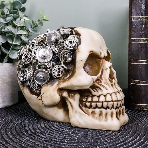- This Steampunk Cybernetic Gearwork Skull Statue is made of Premium Cold Cast Polyresin hand painted and polished