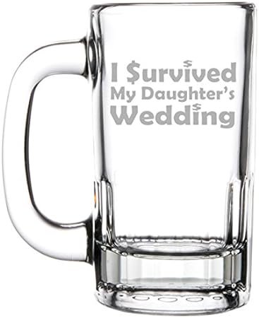 - 12oz Beer Mug Stein Glass Funny Mom Mother Dad Father of the Bride I survived my daughter’s wedding