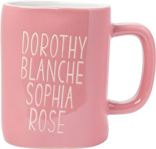 - WAX RESIST CERAMIC MUG: Enjoy your morning beverage in this cute Golden Girls 24.5oz. Wax Resist Ceramic Pottery Mug. Features the Golden Girl’s names against a Pink background