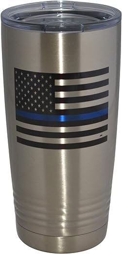 • Show Support For Law Enforcement The Thin Blue Line Flag Travel Tumbler Makes a Perfect Gift to Any Police Officer Dad Grandpa Brother or Friend