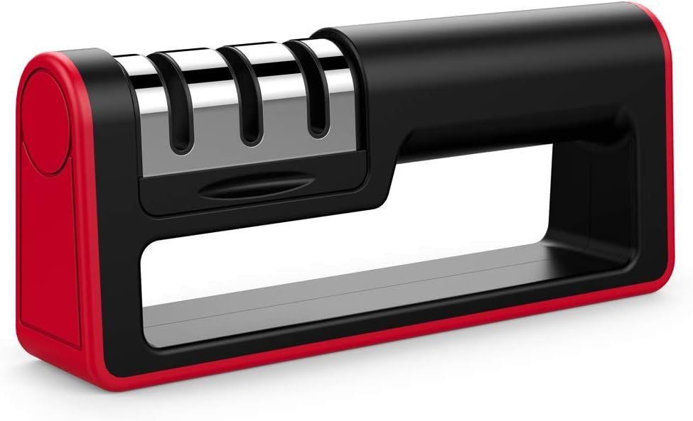- Safe and Easy: This is a knife sharpener preferred by amateur. Easy to use by pulling the knife through each slot a few times to achieve a new blade.