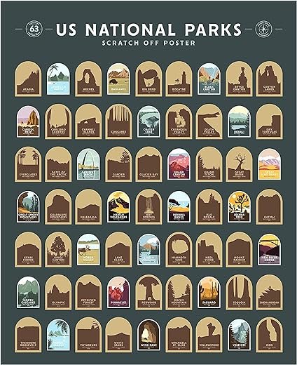 - Take Inspiring Adventures – Enno Vatti US National Parks scratch off poster showcases 63 eye-catching illustrations of all the amazing natural places the US has to offer. Choose your next great adventure.