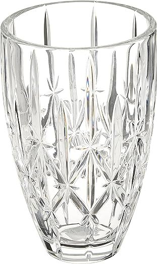 This elegant Waterford Marquis vase is perfect for displaying fresh or dried flowers. Featuring stunning cuts that resemble starlight, it is crafted from high quality lead-free glass that is dishwasher safe. At 9 inches tall, it is an ideal size for any table or mantle. Packaged in a Marquis by Waterford box, this vase adds a touch of luxury to any home.