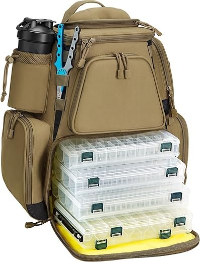 • Affordable and Feature-Packed: This fishing tackle backpack not only includes a protective rain cover, hard molded sunglasses case, KAM buckle, and SBS zippers, but it also comes at a low affordable price. It is the ultimate backpack for every angler, offering both functionality and value.