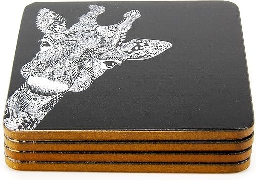- ★Shape & Pattern & Size:Square coasters,animal coasters(Giraffee),the drink coasters’size is 3.55 inch,set of 4,also have other patterns for your choose,the sharp also have round.