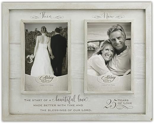 • THEN & NOW: Commemorate your love story and keep your memories alive with this side-by-side, then and now picture frame inscribed with the sweet, timeless quote, “The start of a beautiful love made better with time and the blessings of our lord”