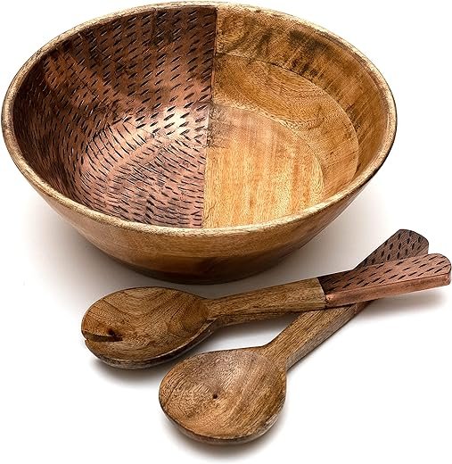 - PERFECTLY UNPERFECT GIFT- Wood Salad bowl with servers has a Rustic finish, making this perfect kitchen gifts for Mother’s Days, Christmases, Birthdays or as a Wedding Bowl Gift. This wooden salad bowl set make Inexpensive but Elegant, Useful and Thoughtful Gift for the occasion