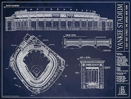 Ballpark Blueprints offers a unique and impressive gift for Yankees fans – a hand-drawn artwork of the new Yankee Stadium. Measuring 18″ tall x 24″ wide, this museum-quality print is made on crisp paper with a beautiful texture. It showcases detailed elevation and plan views, along with other structural details. Don’t settle for imitations, trust Ballpark Blueprints for the best. The perfect gift for any discerning Yankees fan on your list!